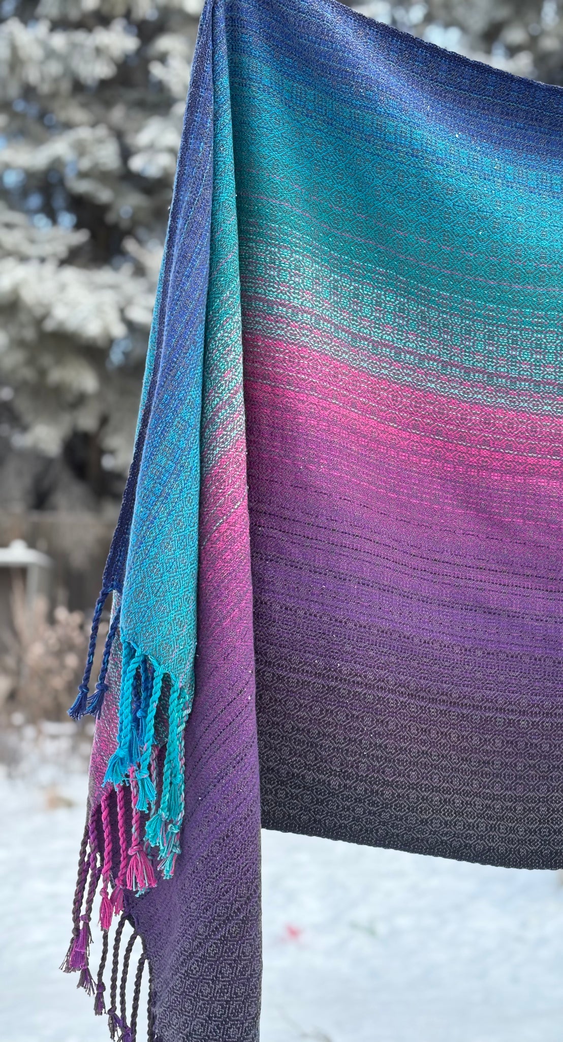 Cotton warp . Tencel weft . Twisted fringe