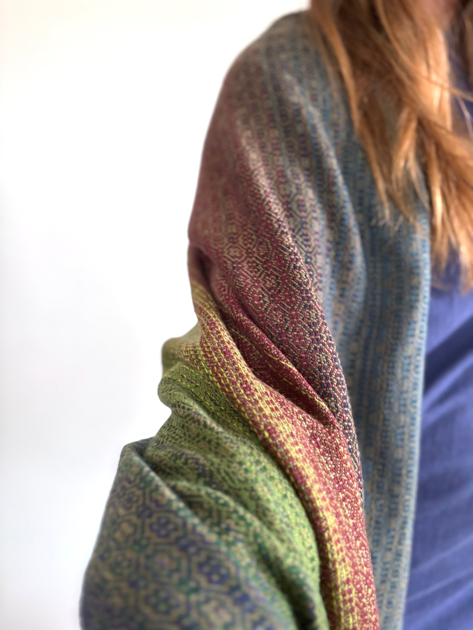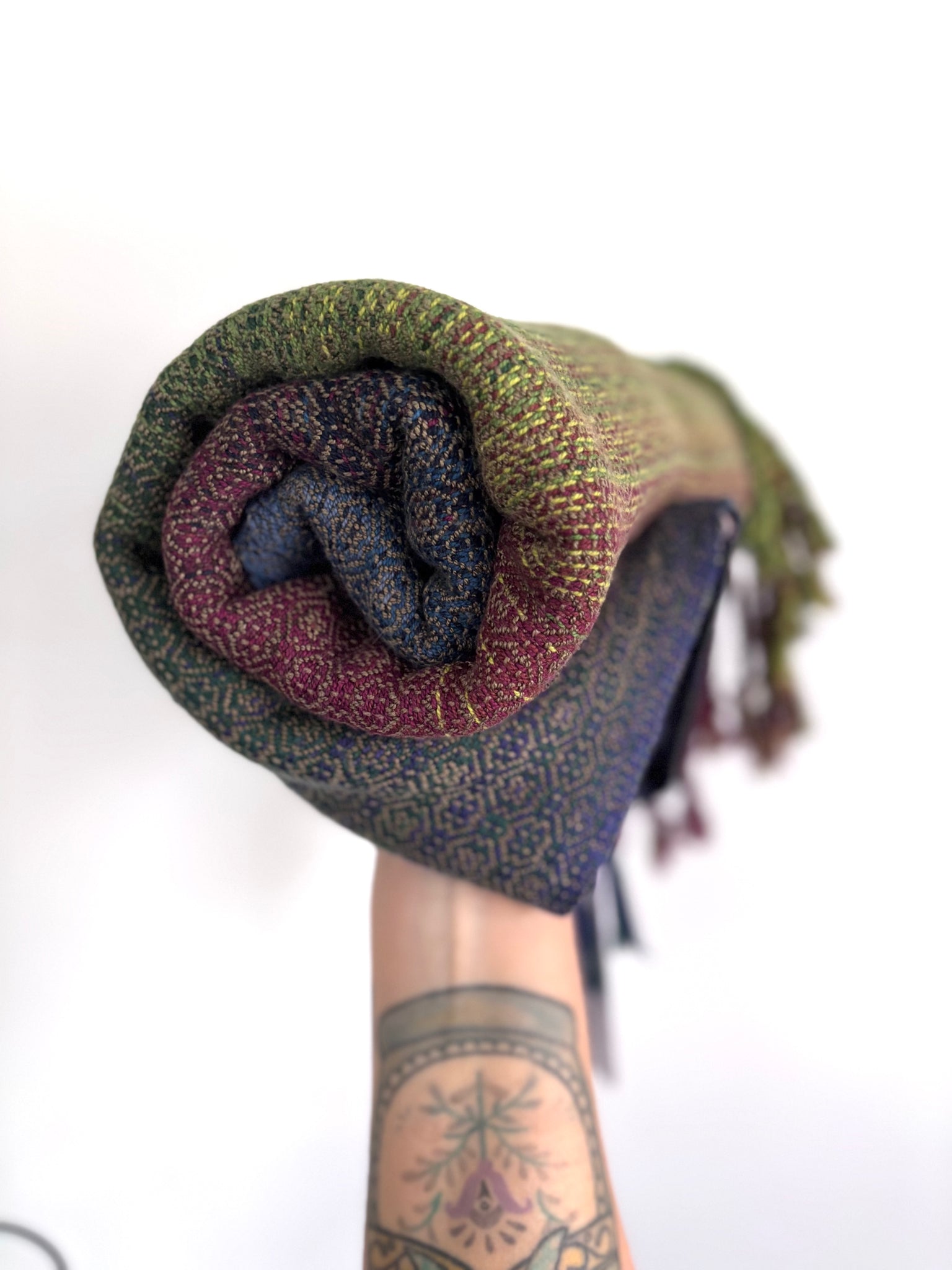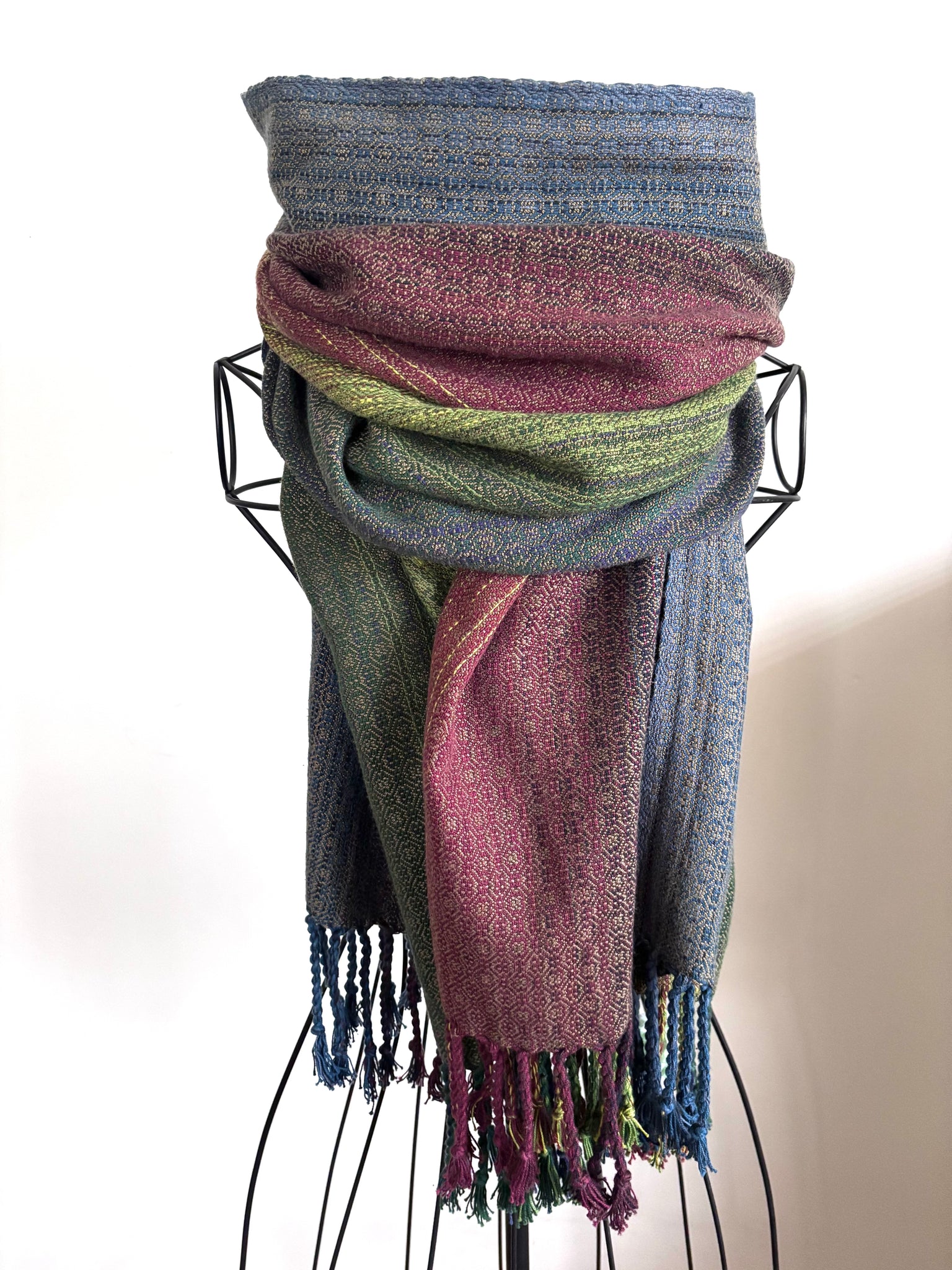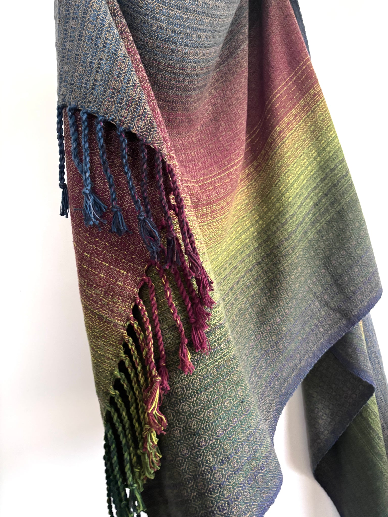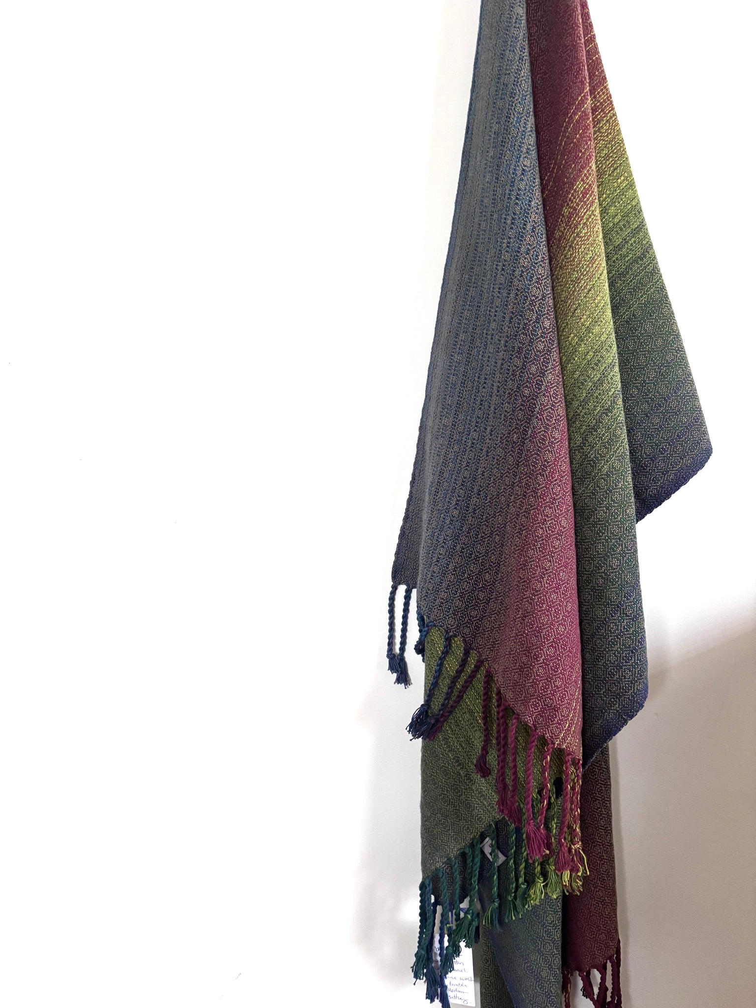 Cotton warp . Tencel weft . Twisted fringe