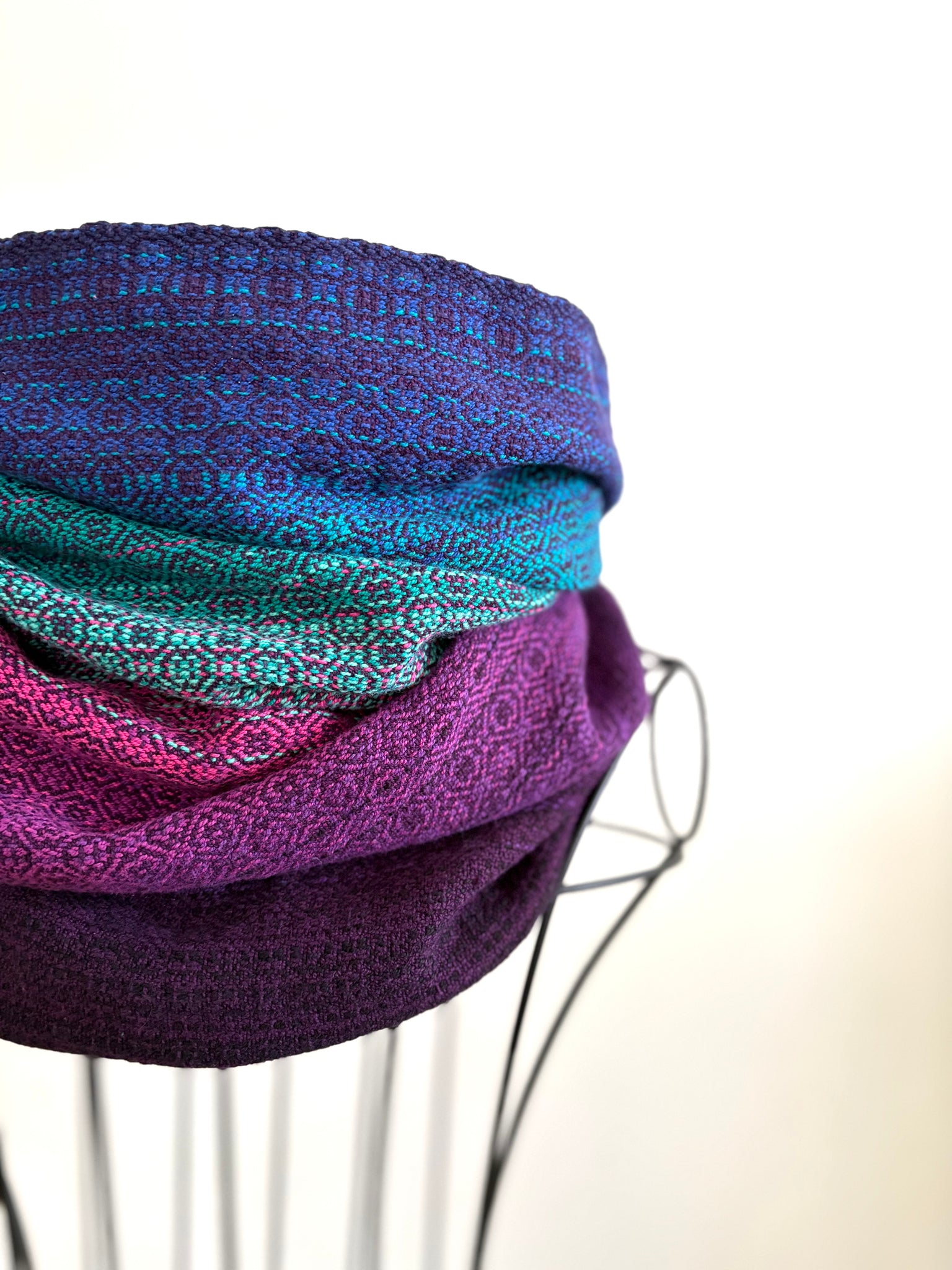 This cowl is from the Feminine Rage collection. It is 100% cotton and has lovely structure with along with beautiful colour saturation.