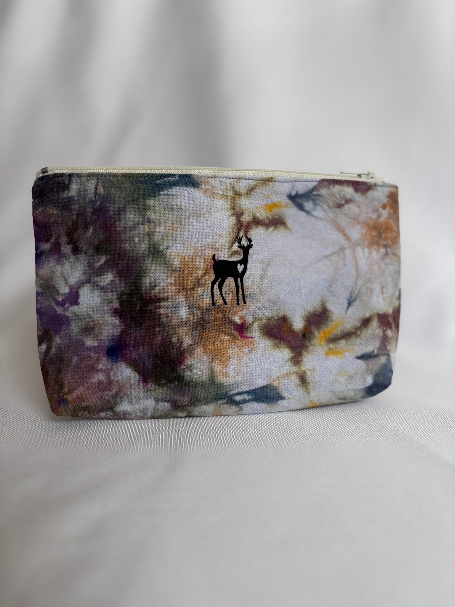 This little zipper pouch has an ice dyed cotton exterior, linen interior and zipper closure