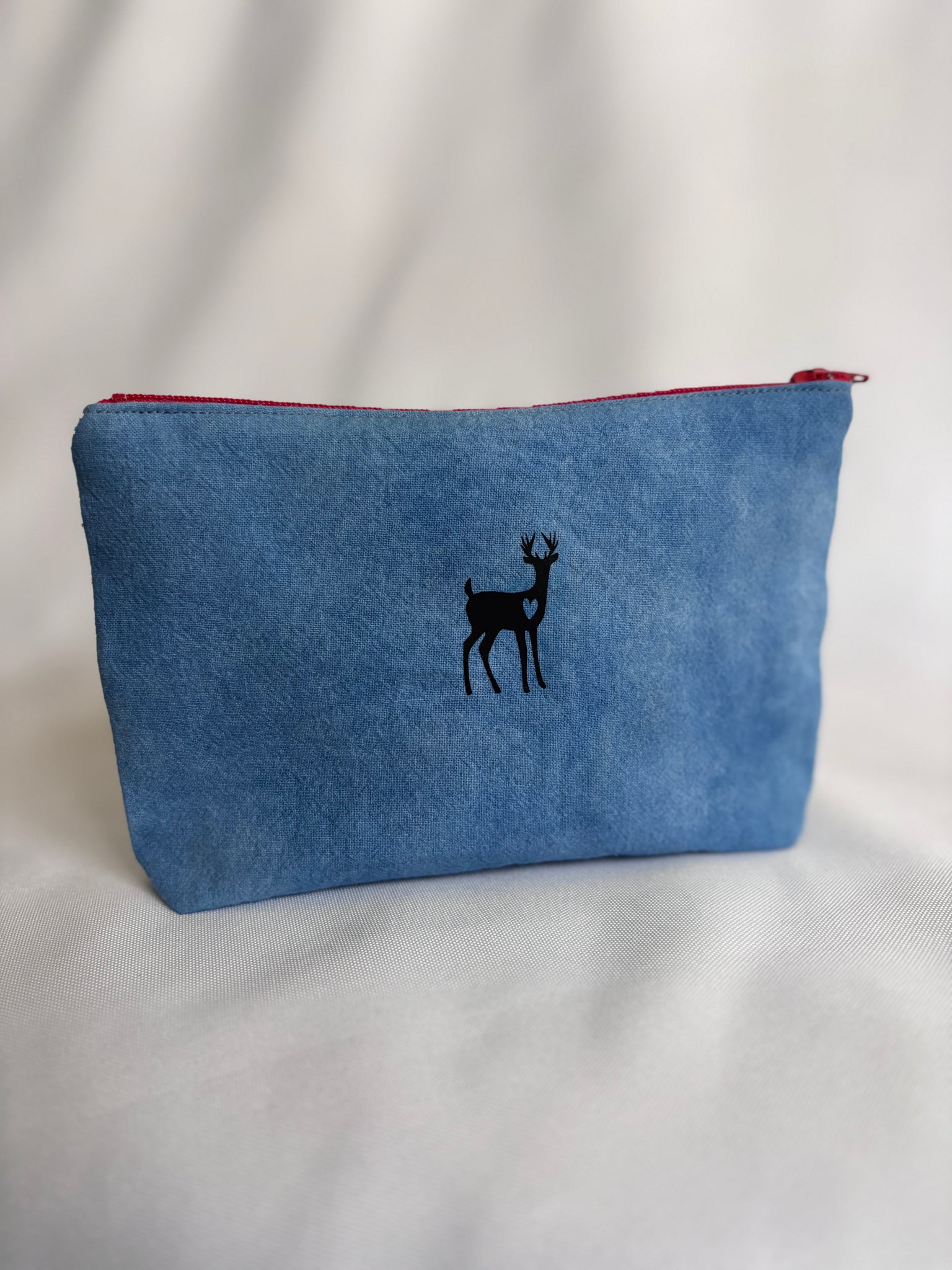 This little zipper pouch has an indigo dyed cotton exterior, linen interior and zipper closure