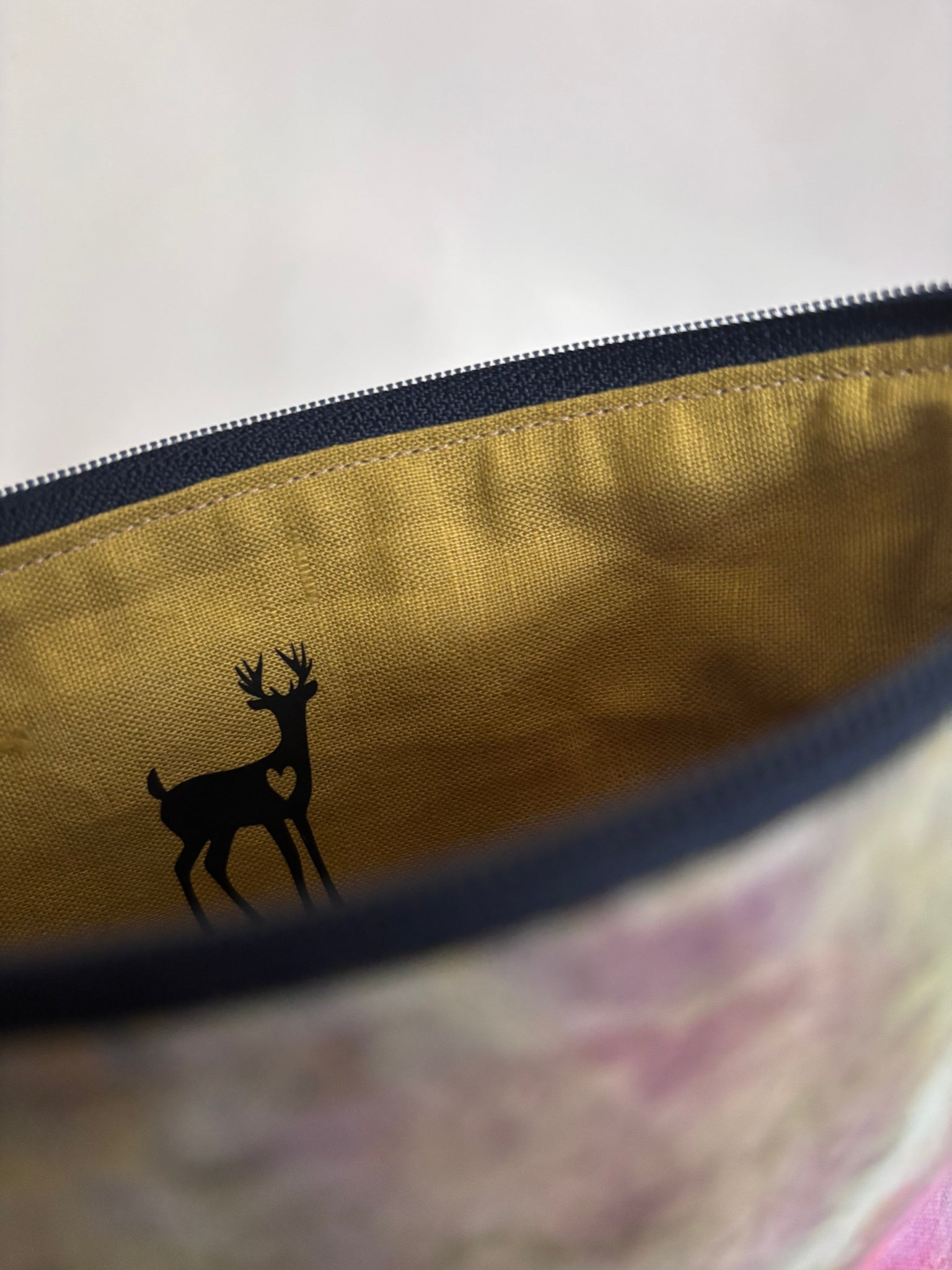 This little zipper pouch has an ice dyed cotton exterior, linen interior and zipper closure