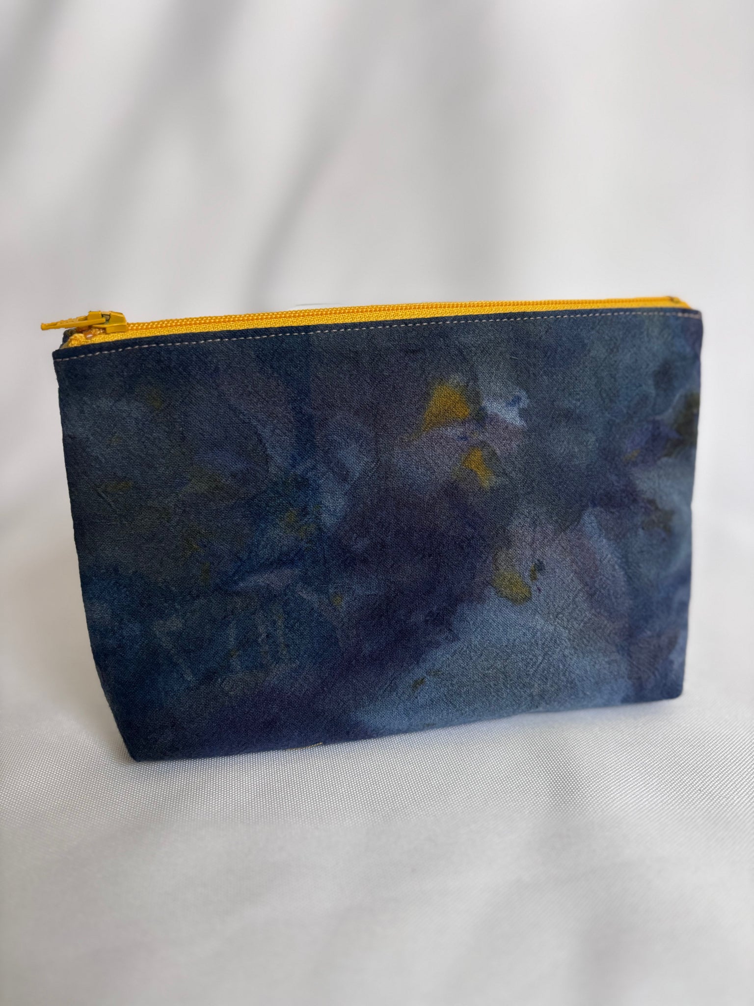 This little zipper pouch has an ice dyed cotton exterior, linen interior and zipper closure